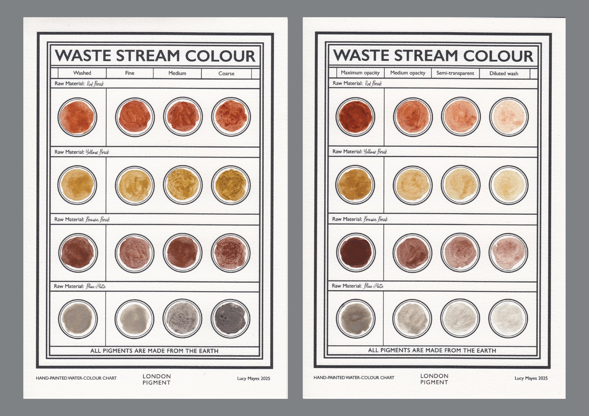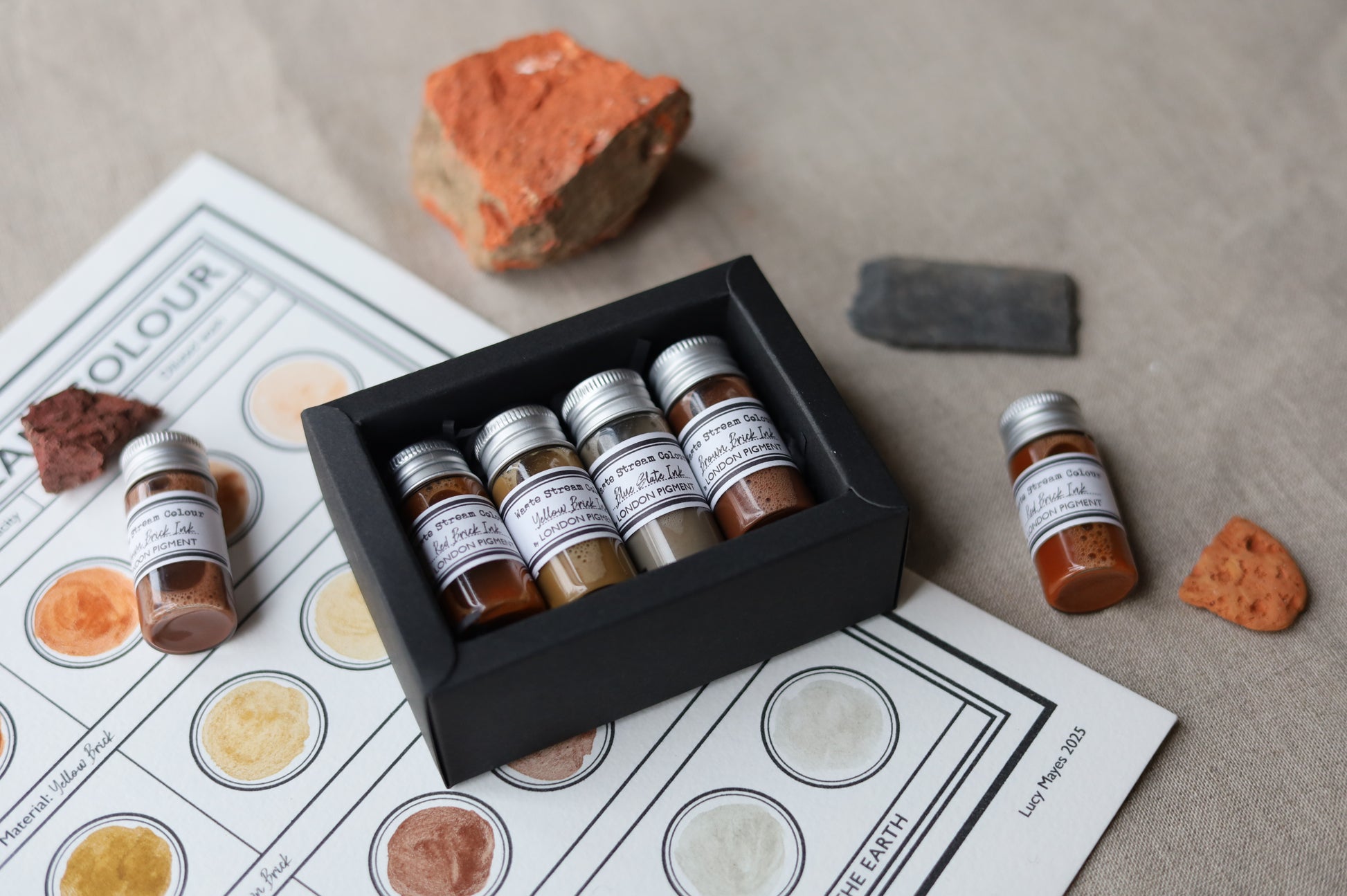 These pigmented watercolour inks are made with reclaimed pigments and gum Arabic as the binding medium. Experience the unique qualities of pigments made from local construction waste.